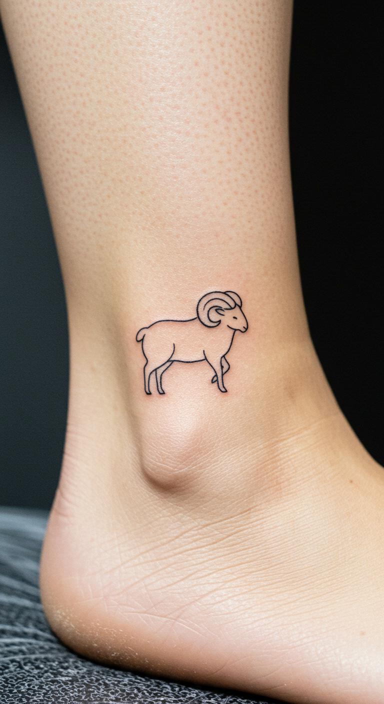 A delicate ram on your ankle adds grace. Use fine lines in your drawings. Keep it low on the leg. Affordable at $40. Refine with details. Trace on your skin with washable markers. This spot is elegant. Tend with foot creams. Start small. It’s dainty yet strong.