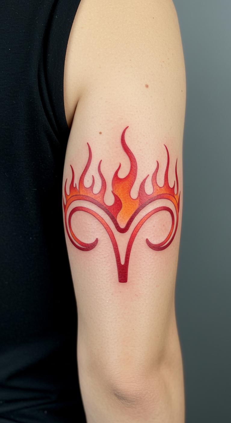 Picture flames dancing around the Aries symbol for a burst of energy. This tattoo keeps things straightforward with red and orange hues outlining fire shapes. Draw your own version using colored pencils at home—grab a set for about $10. Position it on your shoulder for a dramatic effect. Opt for a nearby shop with rates starting at $60 for color work. Include a small ram icon to tie it back to your sign. Try a DIY mockup by printing flame templates online and tracing them. This idea works well for showing your passionate side. Use household items like aloe vera for initial care. Make it your own by adjusting the flame size during your sketch session. It’s a fun way to highlight Aries fire without much fuss.
