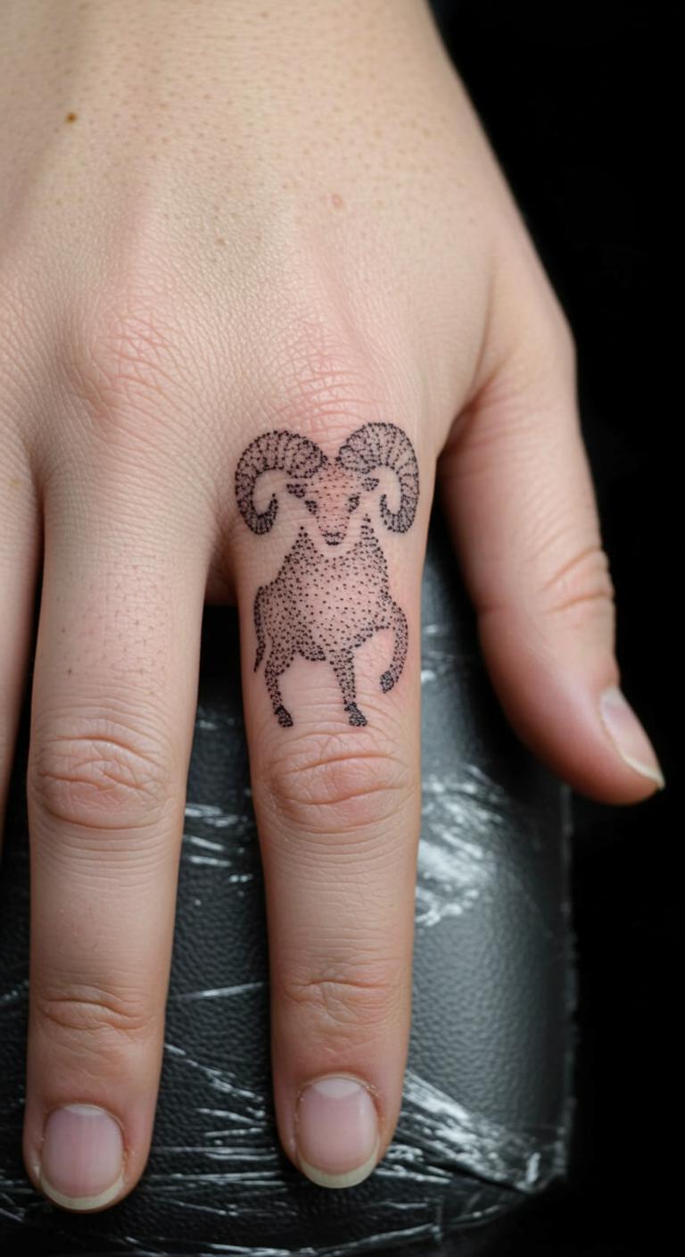 Dotwork rams on your finger keep things tiny and modern. Build it with dots using a pen sketch. Place it for constant view. Find deals under $30. Add more dots as you go. Use dot stickers for planning. This method is precise and cool. Protect with finger bandages. Experiment at home. It’s a quick, affordable option.
