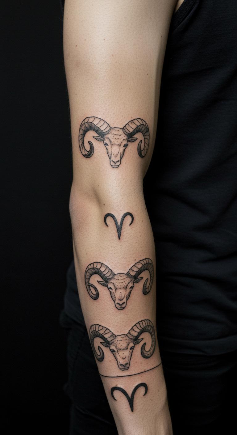 A band of Aries symbols around your wrist offers subtle style. Use thin lines for elegance. Sketch it with a ruler at home. Wear it like jewelry. Budget artists start at $40. Personalize with patterns. Practice with string wraps. This tattoo is versatile and everyday. Maintain with hand lotion. Layer ideas gradually. It’s an easy, visible choice.