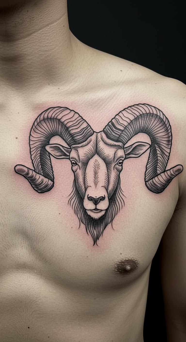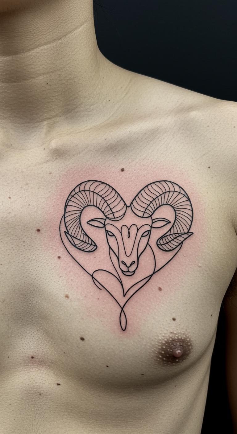 Combine a ram with a heart on your chest. Draw hearts and rams together. Put it over your heart. Expect $60 fees. Make it sentimental. Practice on paper hearts. This design is warm. Care with chest-friendly items. Blend ideas easily. It’s heartfelt and simple.