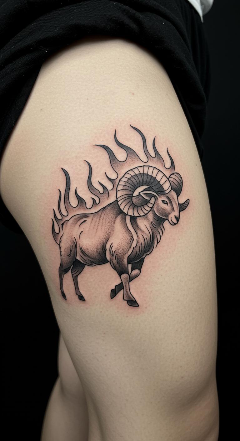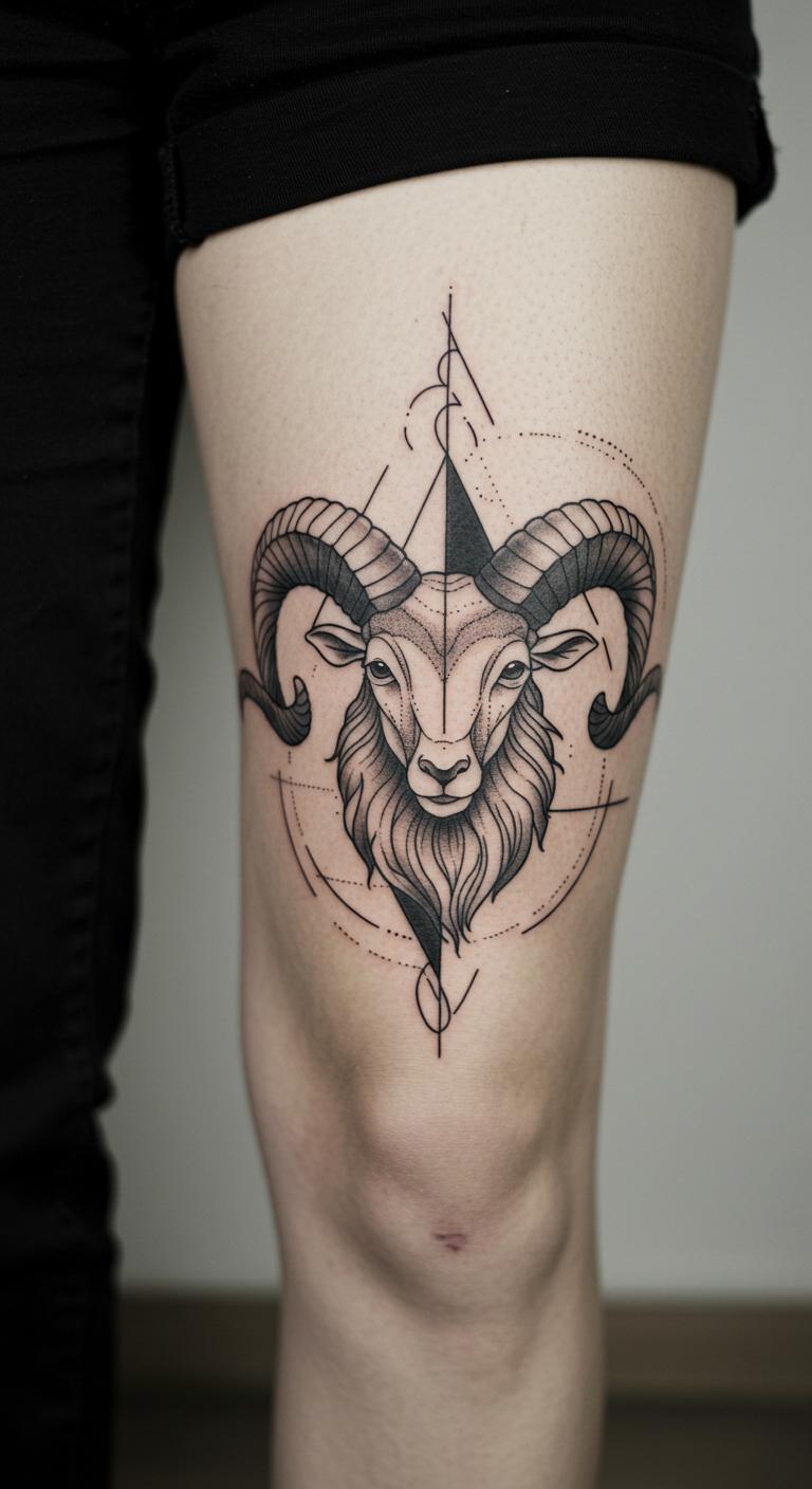 Place a ram on your thigh for a dramatic, personal spot. Keep the design clean and small. Draw a template on paper at home. Choose this area for its privacy. Expect costs around $70. Tailor it to your style. Use free apps to plan. This placement adds flair without showing all the time. Care with daily creams. Test positions on your body. It’s practical and bold.