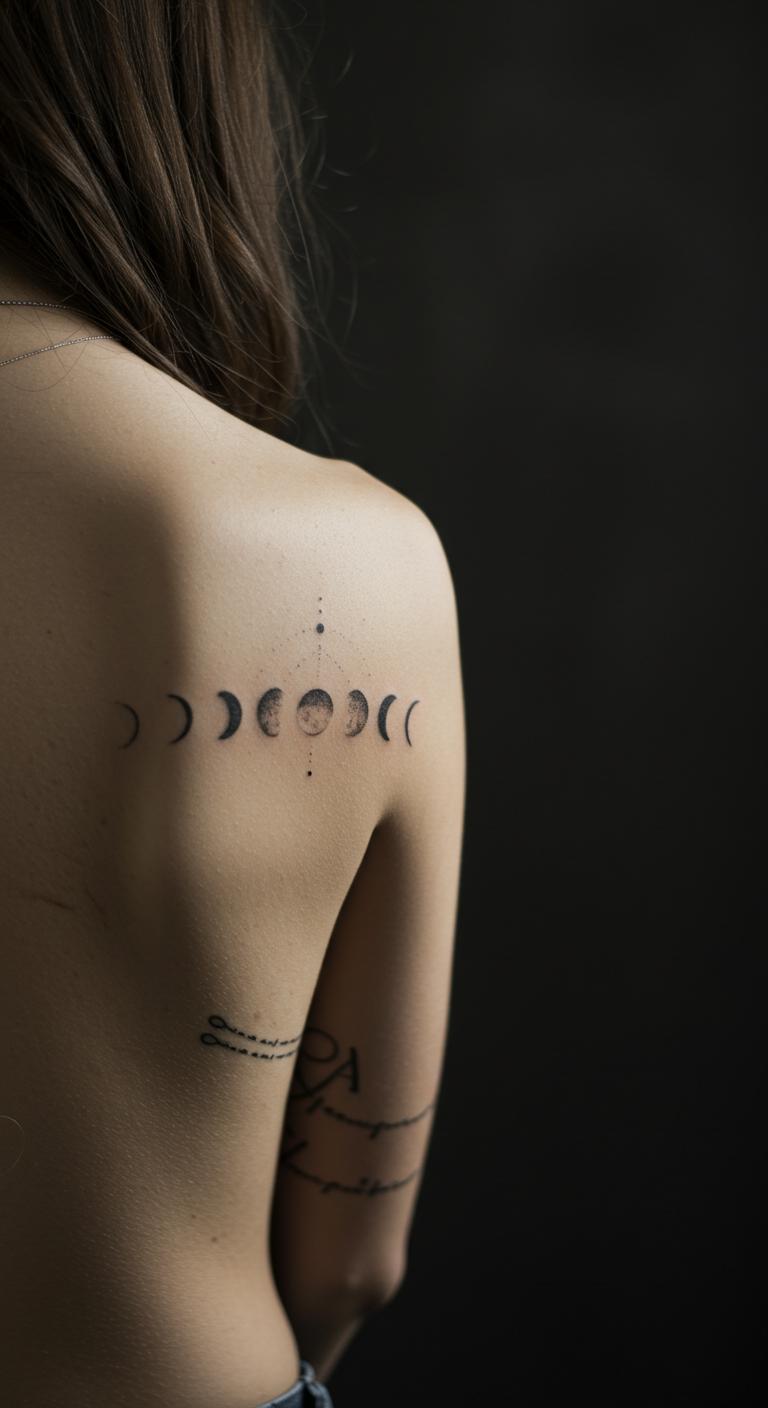 A moon phase sequence tracks change on your back arm. Line up crescent shapes. Use apps to plan the flow. Sessions might be $65. Create phase stickers for DIY practice. Space them evenly for rhythm. Build a full cycle over visits. Keep skin moist for clarity. It reflects your phases.