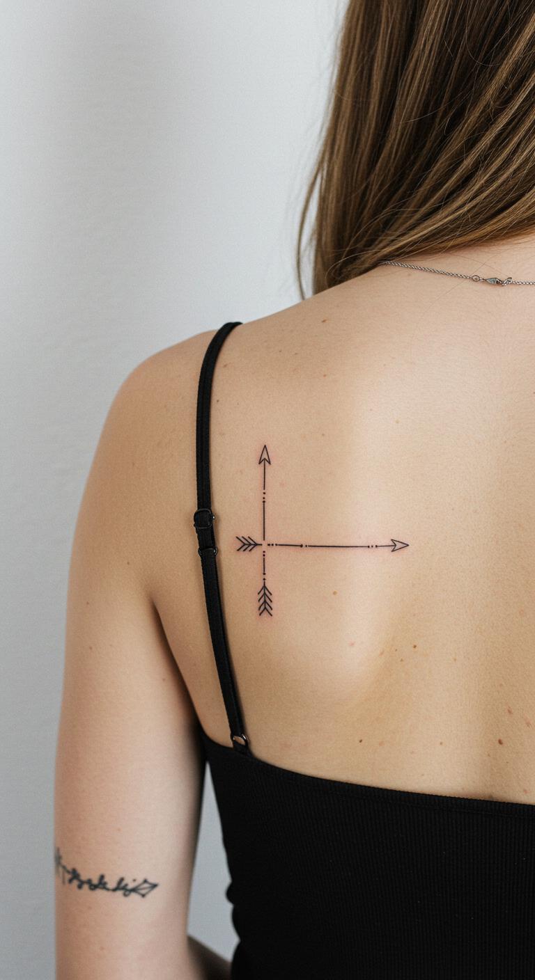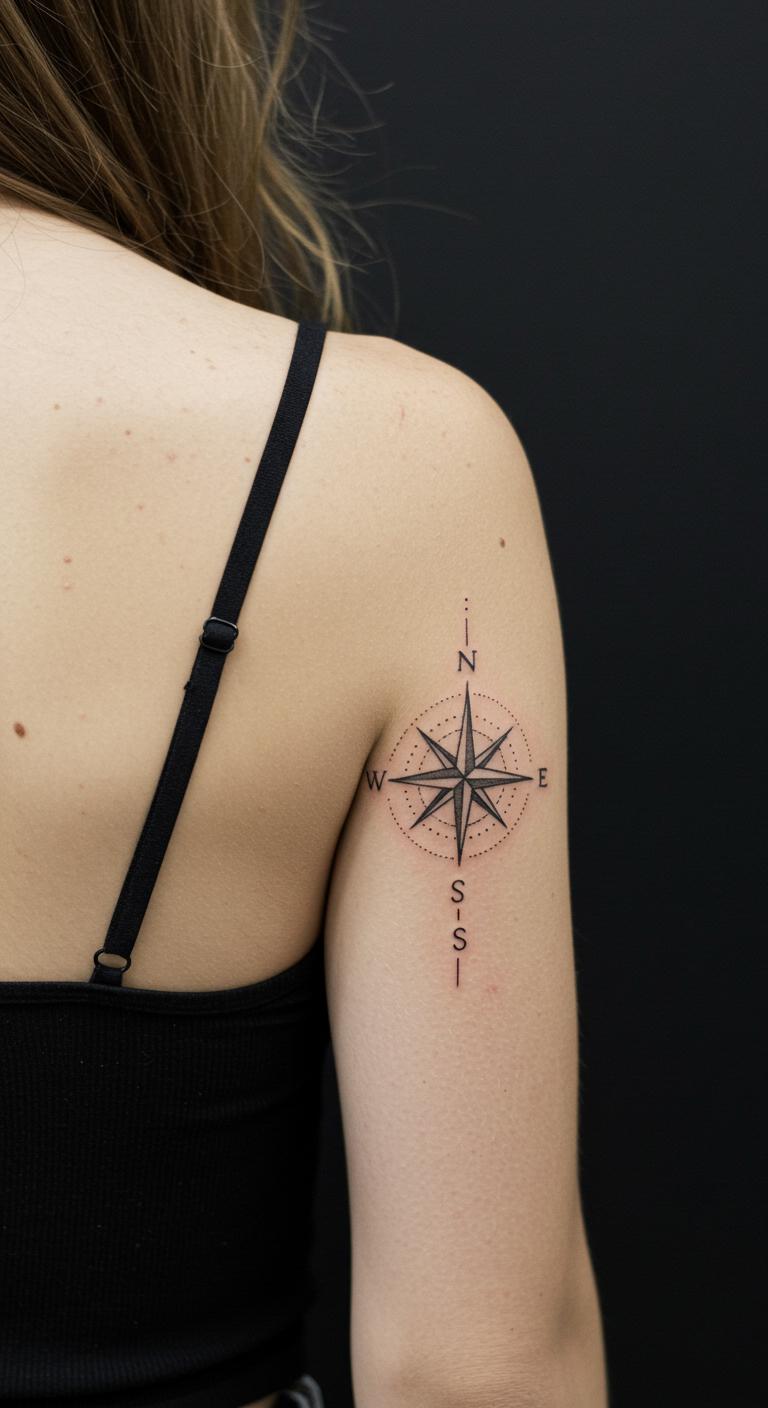 A compass rose guides your back arm. Draw north-south arrows. Use digital tools to preview. Sessions around $65. Create with craft supplies for DIY. Align with your arm’s direction. Expand directions over time. Protect for lasting guide. It points your way.
