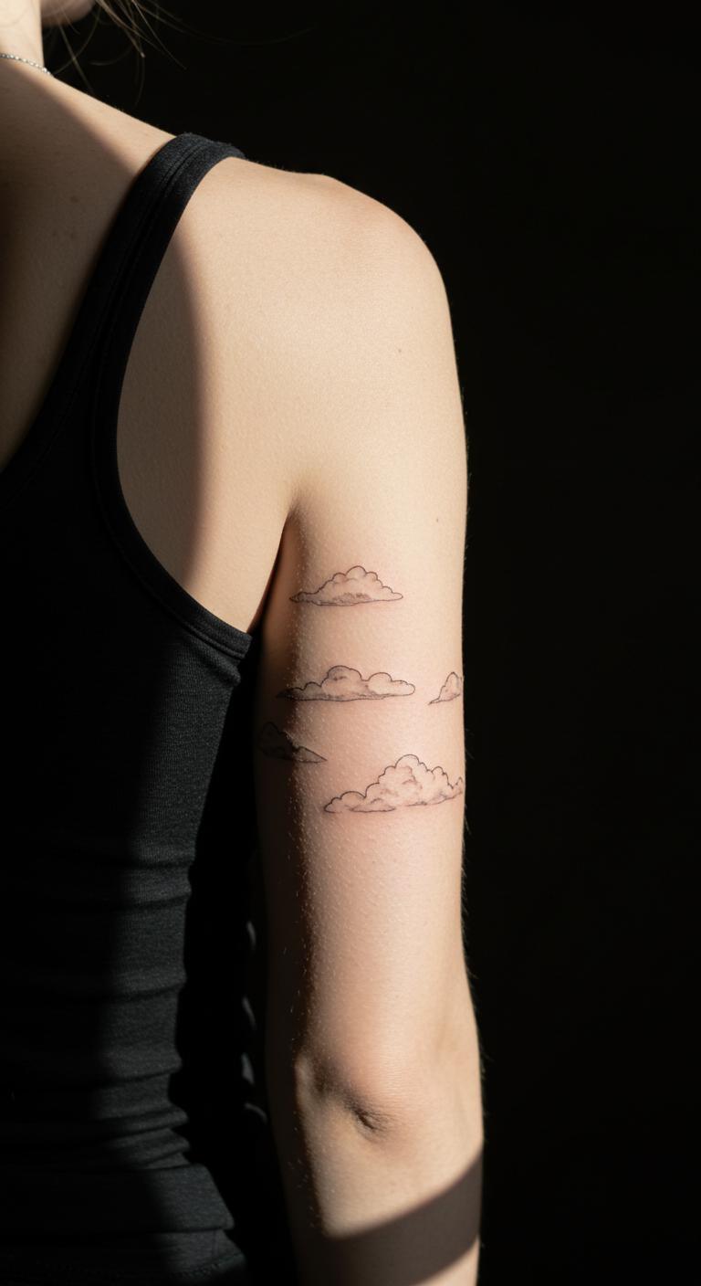A cloud formation floats on your back arm. Draw fluffy clouds. Test with apps. Artists offer for $65. Create with safe paints. Arrange for lightness. Layer for sky effect. Maintain for softness. It drifts with ease.