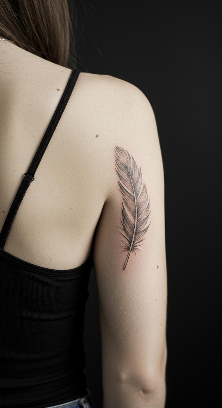 A feather silhouette lifts your back arm subtly. Outline a bird feather shape. Practice on your phone’s editing tools. Artists may charge $55 for this. Create a rub-on transfer at home for trials. Angle it to flow with your arm. Pair with another element if you wish. Keep it hydrated for longevity. It feels freeing.
