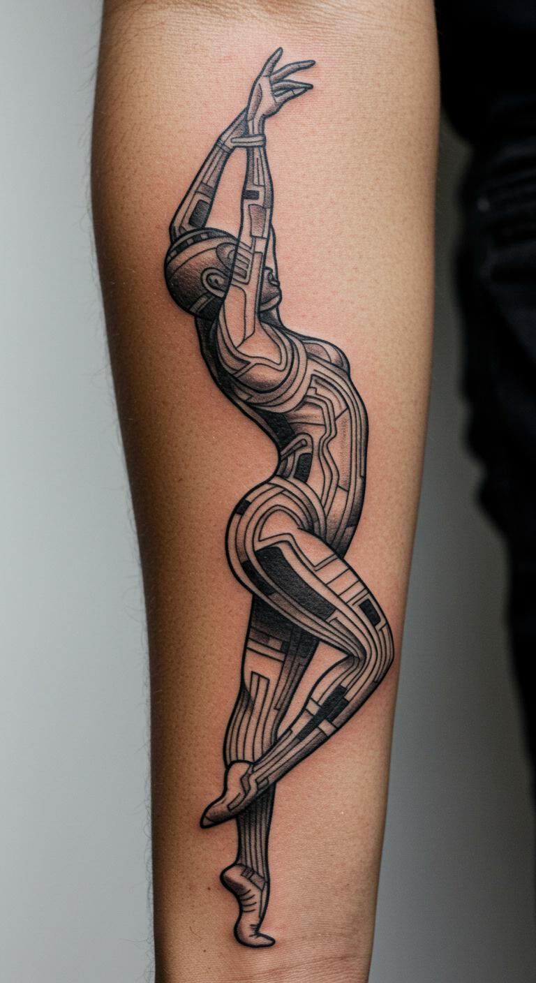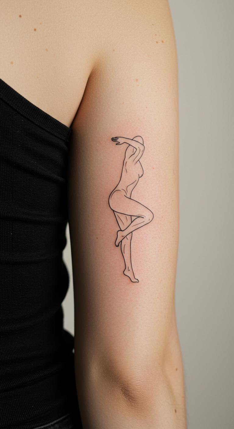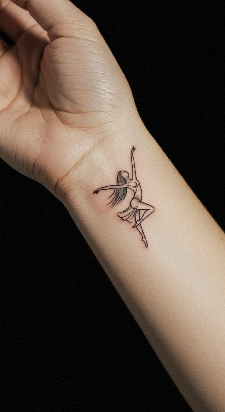 Think about a simple dancer outline that captures motion in just a few lines. This design uses fine black ink to show a ballerina mid-pose. Start small on your wrist for easy hiding or showing. Pick a local artist who specializes in fine lines—they often charge less than $100 for tiny pieces. For a DIY twist, sketch the silhouette on paper first and trace it onto your skin with temporary ink from a craft store. Keep lines clean and straight. Bold the key: fine lines make it last. Add a personal touch by choosing a pose that reminds you of a favorite dance. This tattoo fits daily life and fades less if placed carefully. Go for sessions under an hour to cut pain and cost. Pair it with neutral clothing to let it stand out subtly.