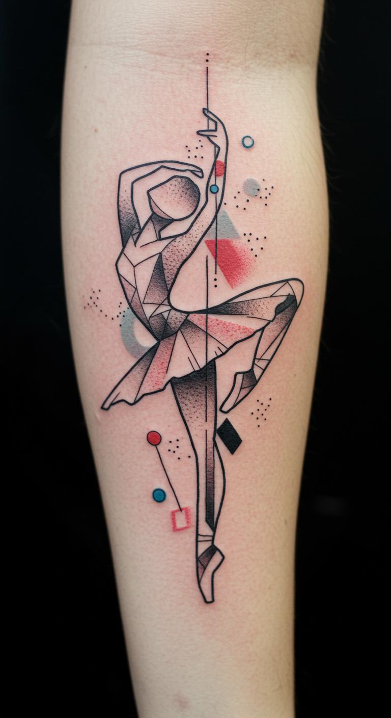 Fuse shapes with ballet lines. Forearm is ideal. Deals at $70. Draw geometries home. Apps for designs. Geometric fusion modernizes. Quick sessions. Pair with patterns. Personalize the shapes.
