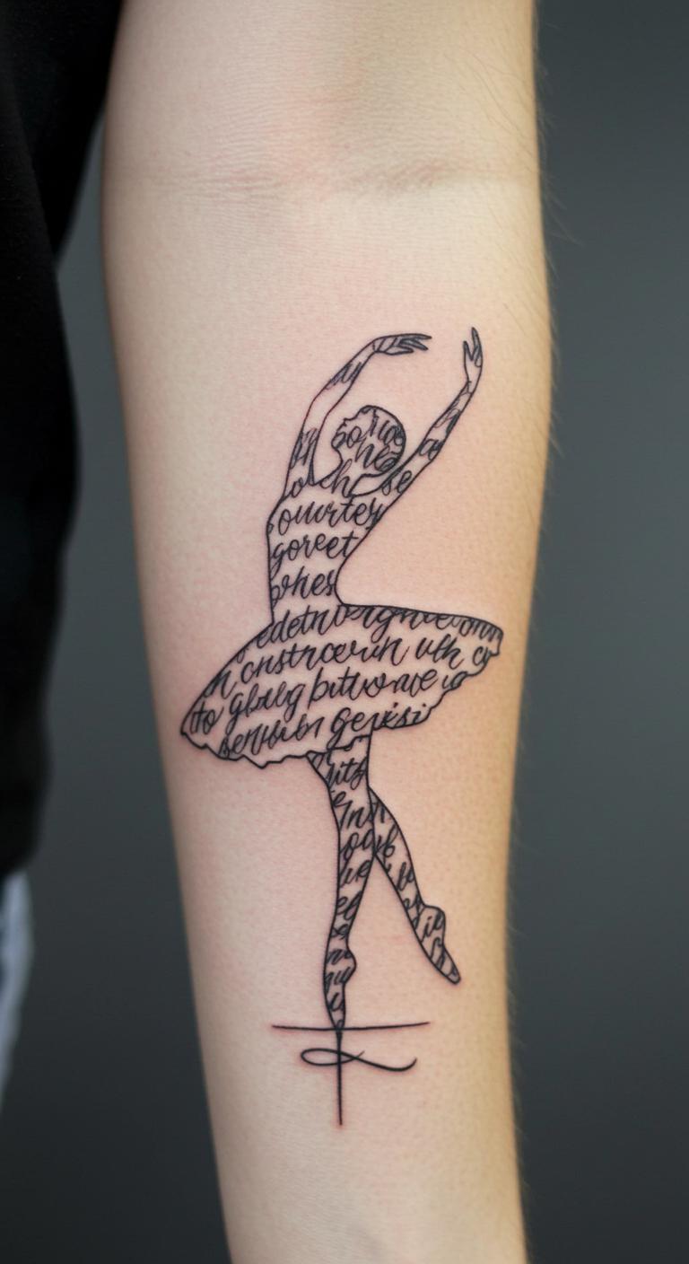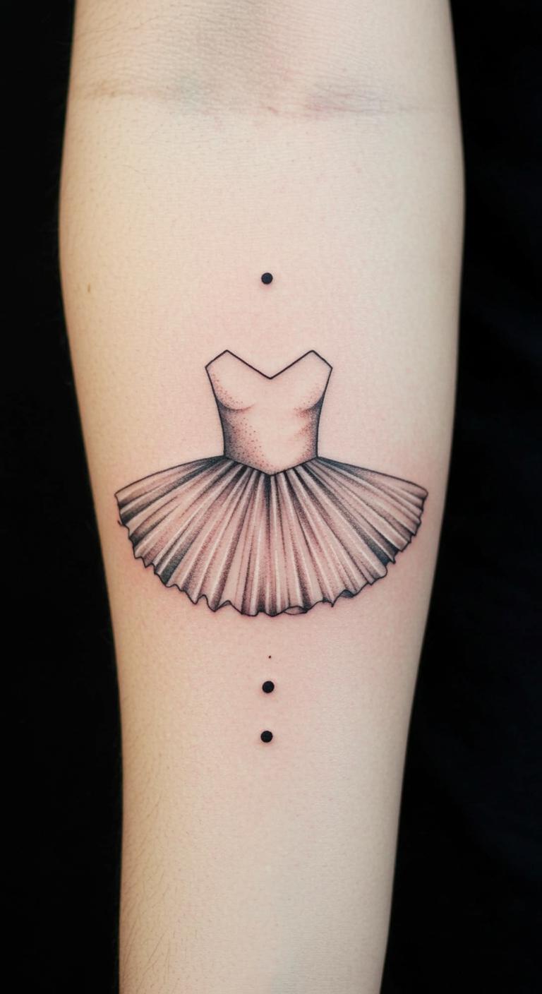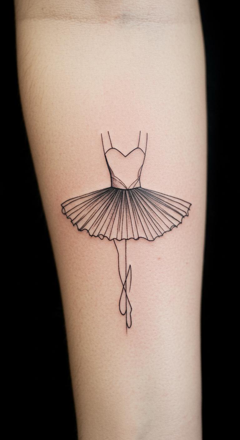 Go for a tutu represented by flowing abstract lines. Place it on your forearm to see it often. Look for budget artists at local shops; sessions might cost under $75. Try a DIY version by cutting a tutu shape from paper and tracing it temporarily on your arm. Use basic drawing tools from home to experiment. Abstract lines add a modern feel. Keep the design small to reduce pain and expense. This tattoo pairs well with loose sleeves for everyday wear. Customize it with a unique swirl that echoes your style. Aim for a fast appointment to keep things simple.