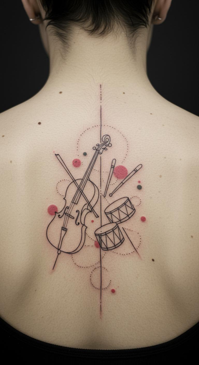 Group instruments in outlines. Draw a collage simply. Plan on large paper. Position on your back for impact. Cost: Collages around $150. Step: Collect instrument images. Real DIY: Arrange cutouts on your body. Focus on variety. Find a collage expert. This idea orchestrates fun.