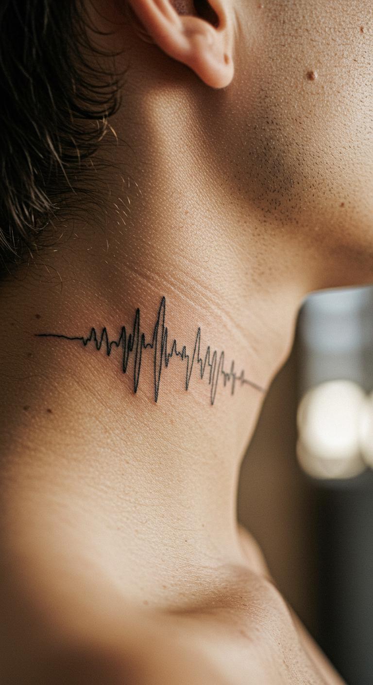 Wave in sound abstractly. Outline waves simply. Record and sketch the wave. Put on your neck for audio feel. Cost: Abstracts $90. Tip: Generate waves online. DIY idea: Draw from music files. Keep lines wavy. Find a soundwave pro. This design echoes tunes.