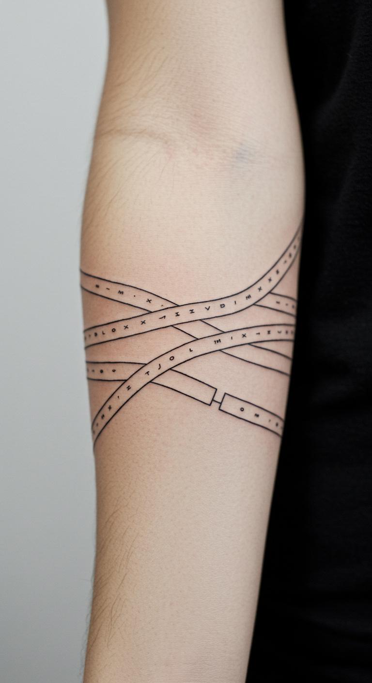 Band lyrics around your arm. Use straight lines for words. Write on a band of paper. Position on forearm for bands. Cost: Bands $110. Action: Wrap paper with text. Real DIY: Bandage with words. Keep text clear. Find a band artist. This idea wraps stories.