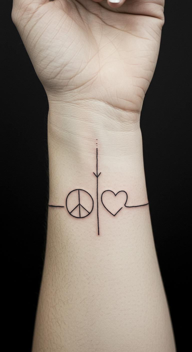 Blend motifs together. Outline peace and love. Draw combined shapes. Put on wrist for motifs. Affordable: Combined $100. Tip: Merge symbols on paper. DIY example: Link them in drawings. Keep it blended. Choose a motif expert. This design connects feelings.