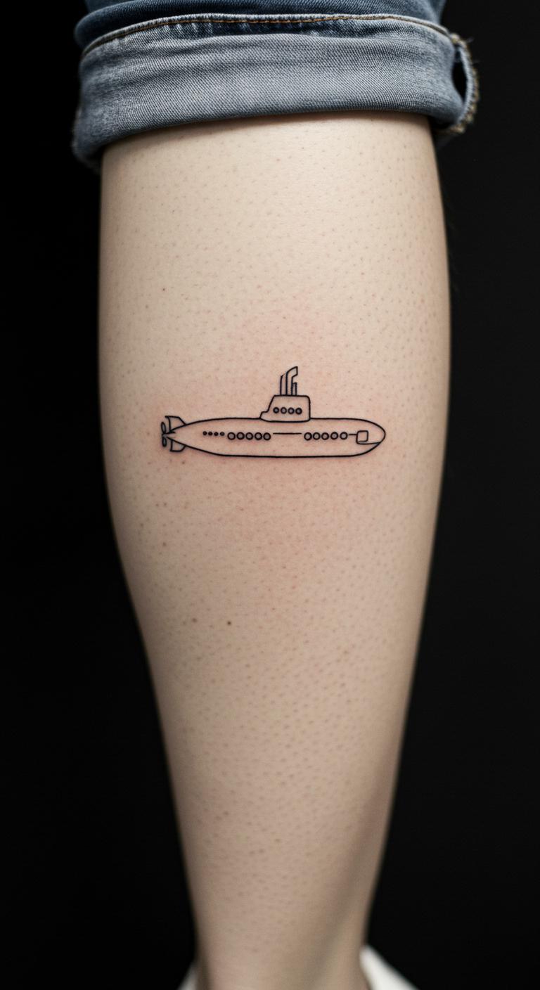 Dive into submarine fun with basic shapes. Outline the sub in minimal style. Draw it on paper to plan your adventure. Put it on your calf for visibility. Affordable option: Small designs can cost about $100. Tip: Use online images to trace at home. DIY example: Create a temporary version with washable markers. Keep it one color for longevity. Find an artist good with icons. This tattoo adds whimsy to your day.