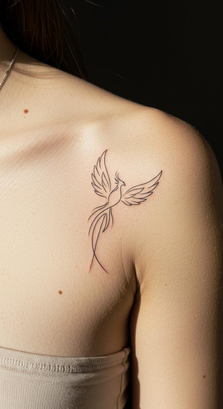 Think about a phoenix tattoo. It stands for rising after tough times. This design uses clean lines to show renewal.