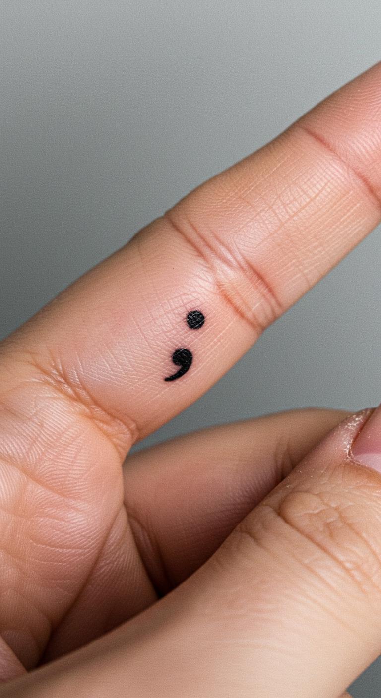 A semicolon tattoo means your story continues. It’s a nod to overcoming challenges.