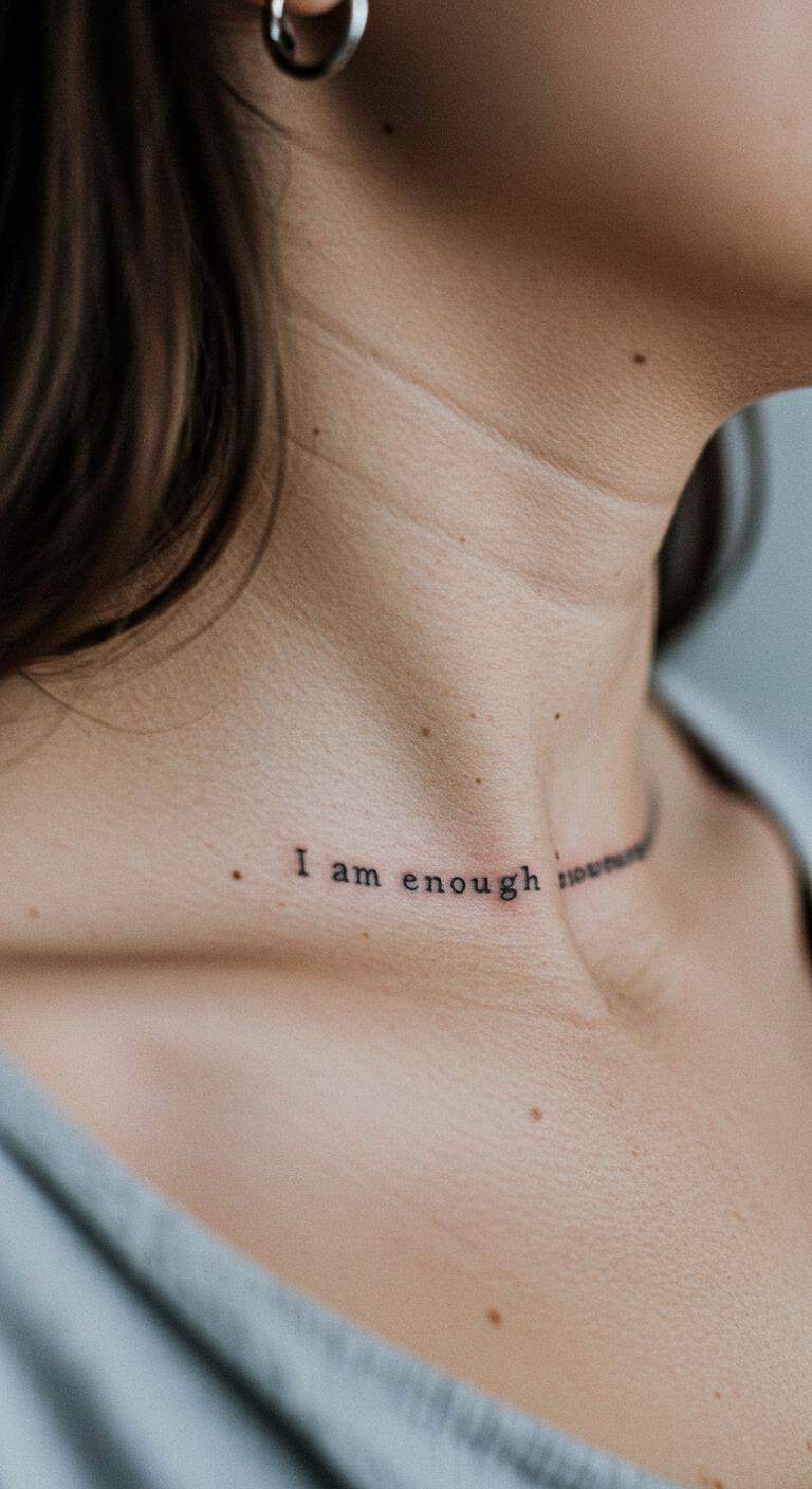 This phrase tattoo affirms self-worth. It’s a direct message of acceptance.