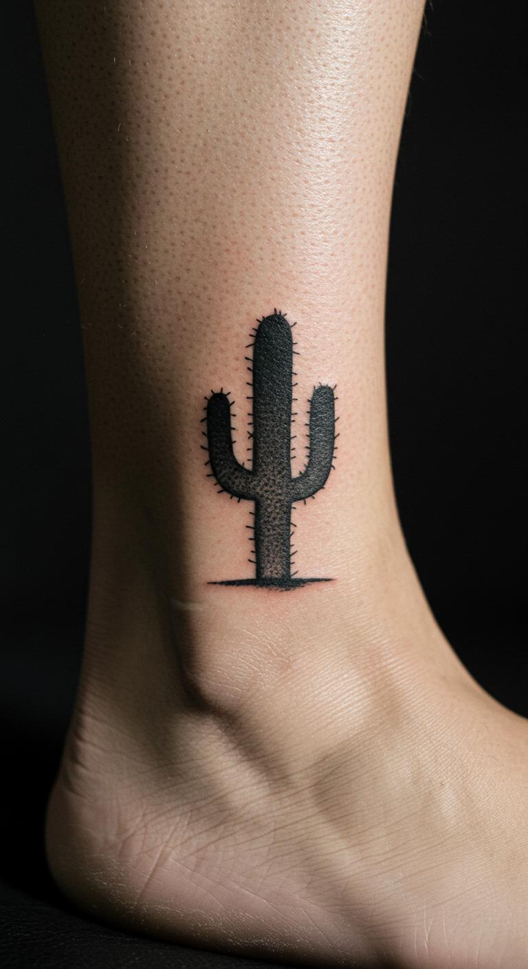 Go for a solid cactus silhouette. Spot it on your ankle for shadow play. Choose black fill for cheap. Sketch silhouettes on dark paper. This creates depth fast. Aim for small at $70. Keep it filled in. Use shadows in drawings. Short efforts count. You build a tattoo with mystery. Focus on the shape. Hide it with boots. Let it stand for strength. Easy fills work.