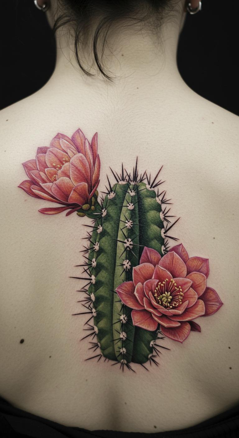 Abstract the bloom on a cactus. Put it on your back for art. Use abstract lines for savings. Sketch abstract blooms. This design flows. Go for creative at $120. Style the petals. Practice with free forms. Short efforts engage. You create an evolving tattoo. Focus on the abstract. Cover as needed. Let it represent change. Easy styles adapt.