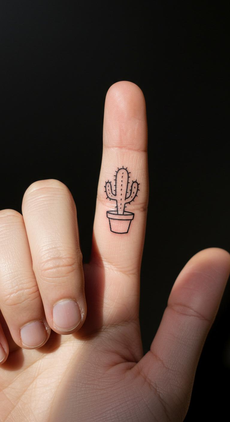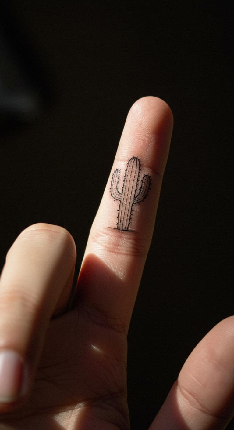 Focus on just one spine for the cactus. Tuck it on your finger for discretion. Choose simple lines for budget. Sketch spines on notepads. This idea keeps it stark. Go extra small for $40. Add a slight curve. Use pens to test at home. Quick tries help. You get a tattoo that’s bold yet quiet. Highlight the spine. Hide it under rings. Let it represent protection. Minor tweaks enhance it.