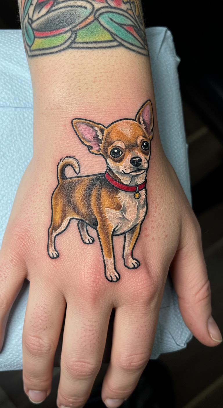 Personalized Chihuahua Tattoo with Vibrant Colors