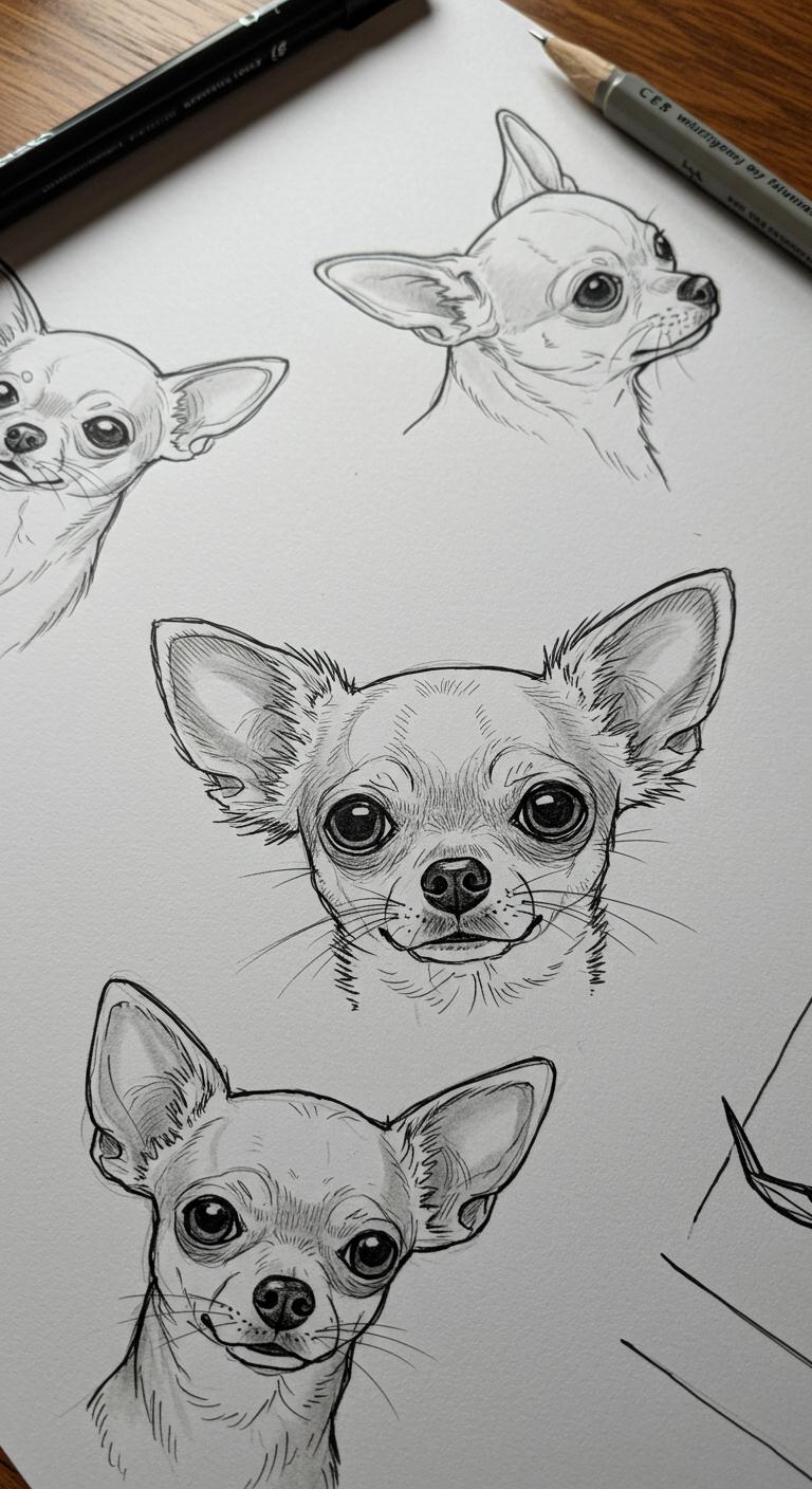 Sketching prepares. Draw Chihuahua ideas at home.