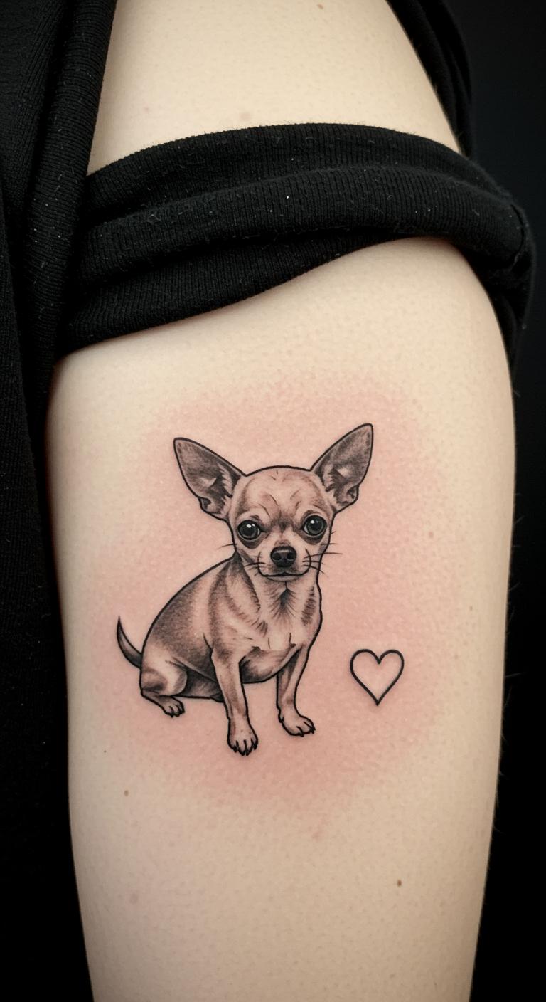 Add words. “Tiny but Mighty” with a Chihuahua sums up spirit. Place it on your arm for inspiration.
