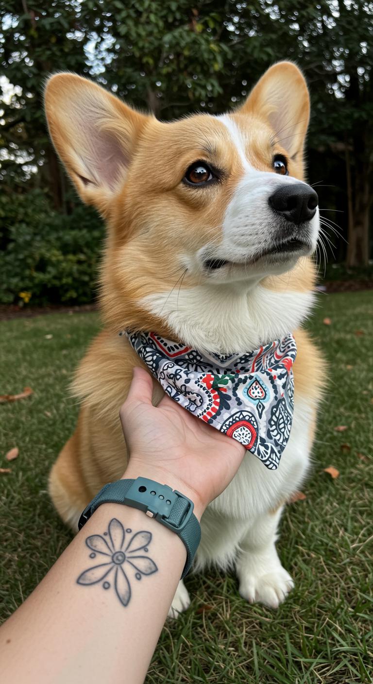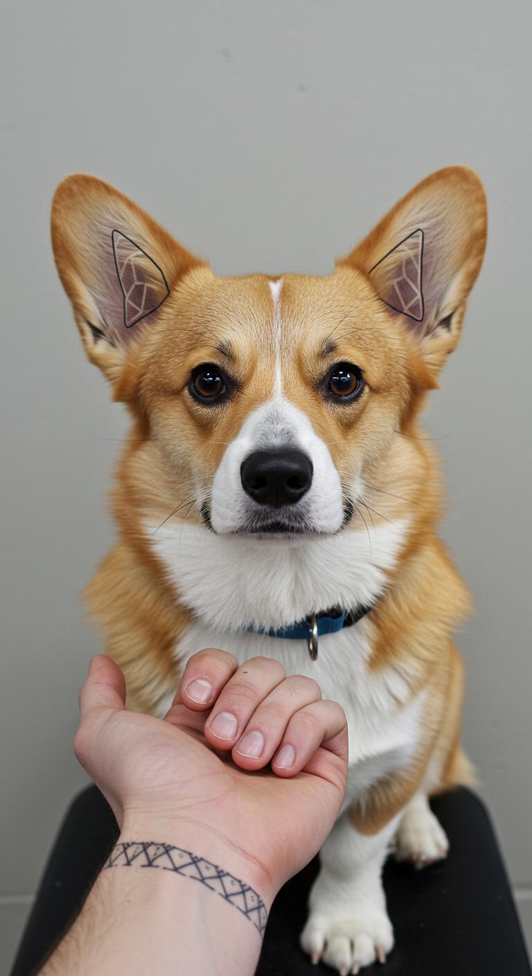 Give your corgi geometric ears like triangles. This modernizes the design. Draw ears with shapes on paper. Easy to do. Find geometric ideas online. Put it on your wrist. Start with the ears. This lowers overall cost. Ask for shape add-ons. Personalize the angles. Use templates to test. It’s innovative yet simple.