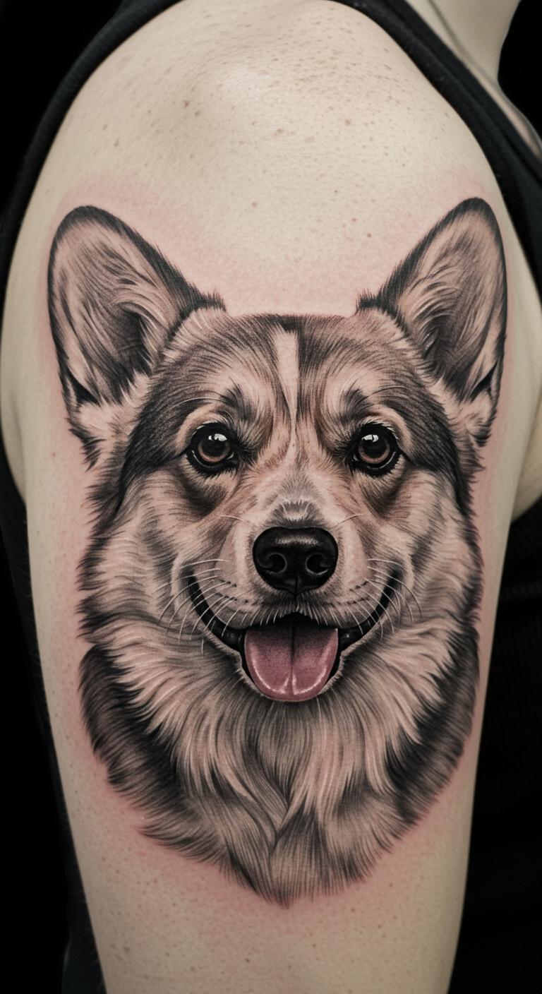 Shade the corgi’s face for depth and warmth. Focus on fur and eyes. Practice shading on paper. Pencils are all you need. Look for shade tutorials. Choose your shoulder. Layer shades carefully. This method cuts expenses. Discuss with artists first. Add your shading style. Test with home tools. The tattoo gains character.