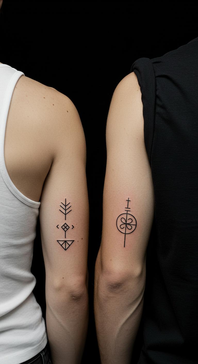 Go for exact matches like arrows. Decide on a shape that fits both styles. Sketch it together on paper. This at-home step is simple and cost-effective. A matching pair might run $80 total. Place them on your back for symmetry. These tattoos show your unity. Adjust sizes to fit your bodies. Action step: Compare ideas side by side. This makes the process smooth and enjoyable.
