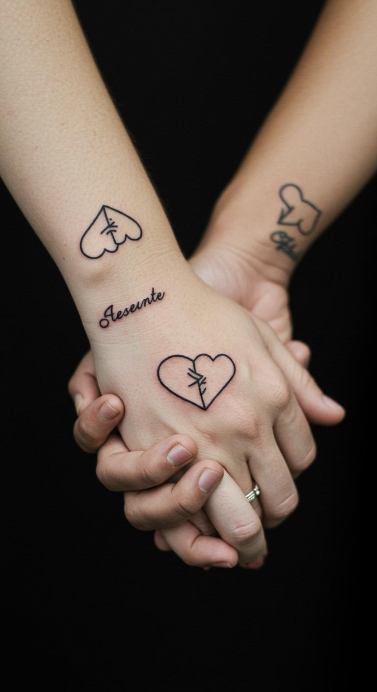 Think about starting with basic line work. Simple tattoos like thin lines forming a heart can say so much. Pick a design that both of you love. Sketch ideas on paper first to keep costs low. This helps you test concepts at home. Use free apps to draw digital versions. Once ready, find a local artist for under $100. These tattoos stay elegant over time. Go for spots like the wrist for easy visibility. Add a personal twist, such as your meeting date. Bold choice: Combine lines into a custom shape. This keeps things fresh and meaningful without extra expense.