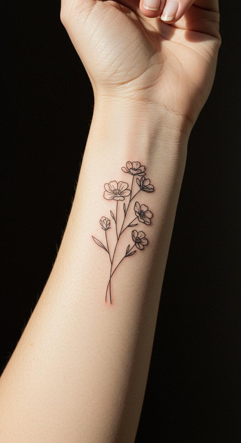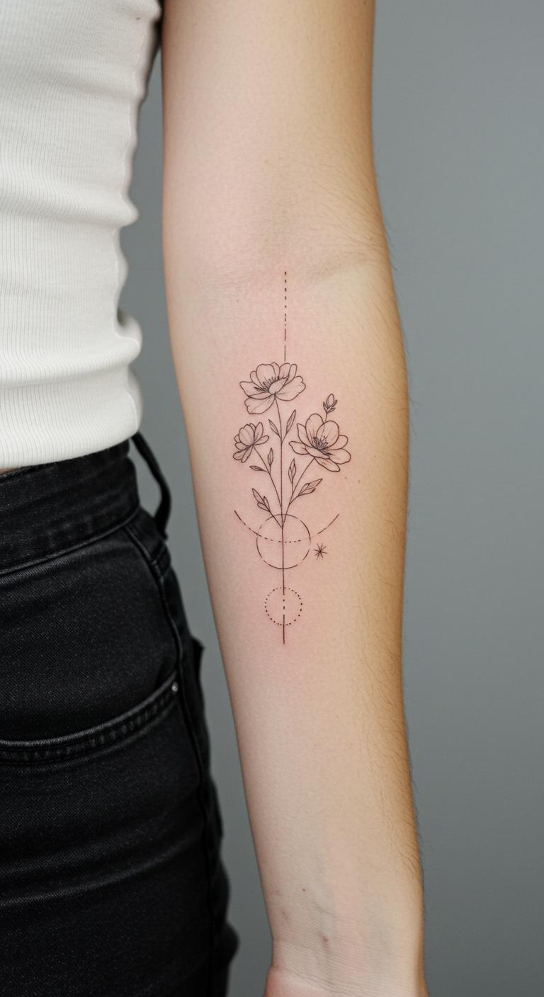 Picture a tiny flower etched on your wrist. This design uses super-fine lines for a soft look. Start with a simple sketch at home. Draw the flower on paper first. Use a fine-tip pen to test ideas. Pick common blooms like daisies. They symbolize growth and fit small spaces. Budget tip: Buy a temporary tattoo kit online for $5 to try it out. Apply one and see how it feels daily. Go to a local artist for the real thing. Choose someone skilled in single-needle work. Ask for their portfolio. Keep it small to avoid fading fast. Clean the area well before and after. Moisturize with basic lotion. This tattoo hides under sleeves or shows off casually. Pair it with nature themes for more meaning. Think about your daily routine. Will it work with your clothes? Get one that matches your vibe. Many people love this for its quick heal time. Just follow basic care steps. Enjoy the elegance without the hassle.