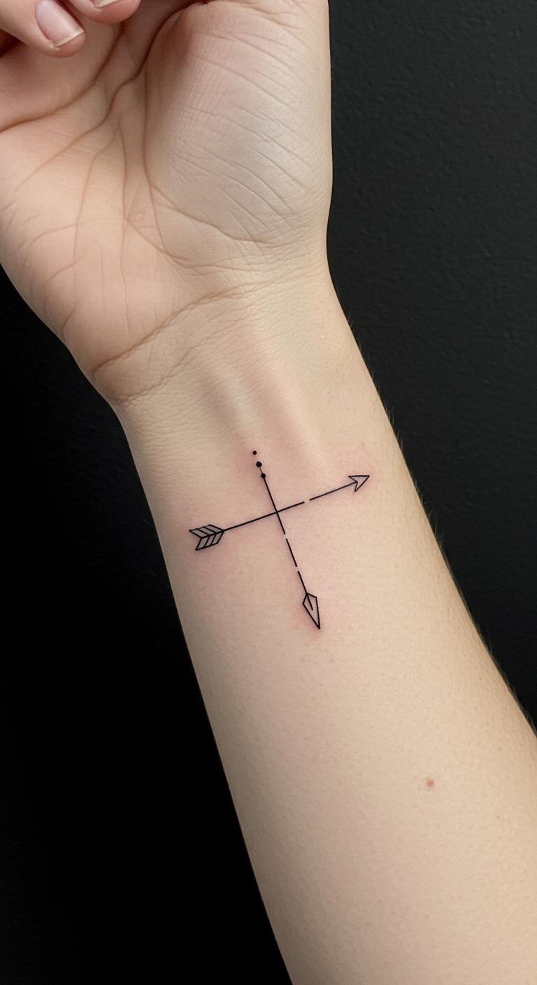 An arrow on your wrist points forward. Thin lines give direction. Draw arrows straight. Test placements. Budget find: Temporary stickers for $1. Arrows mean progress. Go to a local pro. Check skills. Size for wrist. Hide under watches. Wrists heal fast. Add to a path theme. Reflect on goals. People love this symbol. Simple maintenance works.