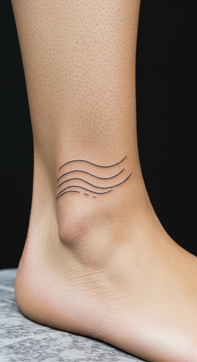 Waves on your ankle flow smoothly. Fine lines mimic water. Draw waves freehand. Practice curves. Thrifty idea: Water drawings with markers. Waves mean change. Visit a skilled tattooer. Look at samples. Make patterns small. Protect with shoes. Ankles are versatile. Add ocean elements. Consider your travels. People choose this for calm. Basic lotion helps.