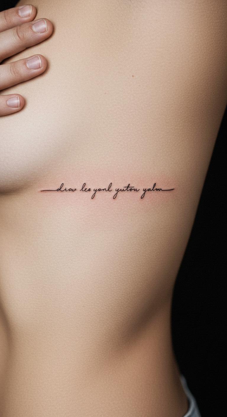 A poetry line on ribs speaks volumes. Delicate script flows. Write lines out. Choose favorites. No-cost tip: Poetry books for ideas. Lines mean expression. Go to an expert. See their script. Size for ribs. Conceal easily. Ribs need gentle care. Pair with words. Think about feelings. Many get for inspiration. Maintenance keeps it.
