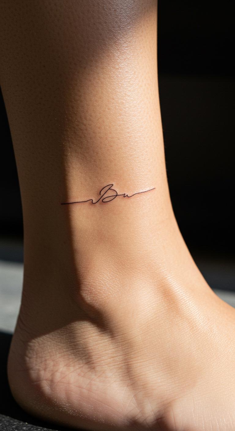 Try initials on your ankle for a personal touch. Fine lines keep it elegant and simple. Write your letters on paper to start. Play with fonts using a pencil. Thrifty tip: Print templates from online sites at no cost. Initials mark family or friends. Find a budget artist locally. Check their past work online. Keep it tiny for easy hiding. Protect from wear with socks. This spot works for daily life. Add dates or symbols nearby. Reflect on who it honors. Folks love this for quick sessions. Just wash and lotion as usual.
