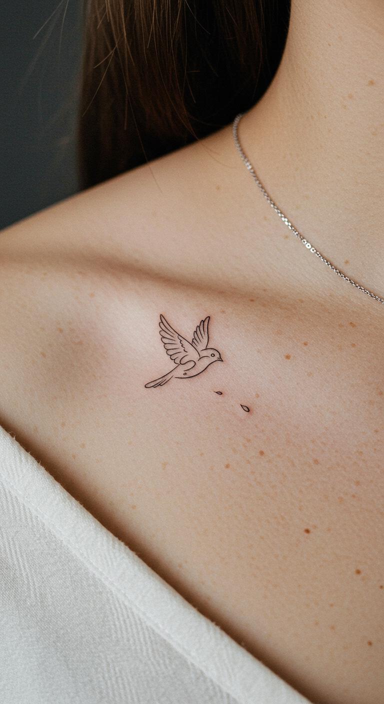 A little bird on your collarbone says freedom. Use precise lines for a light feel. Sketch birds from books at home. Try different poses on paper. DIY save: Draw with eyeliner for a temporary test. Birds mean adventure. Visit an artist who does details. Review their samples first. Make it small to blend in. Shield it with clothing if wanted. This area heals smoothly. Pair with flight themes. Consider your journeys. Many get this for motivation. Basic care keeps it fresh.