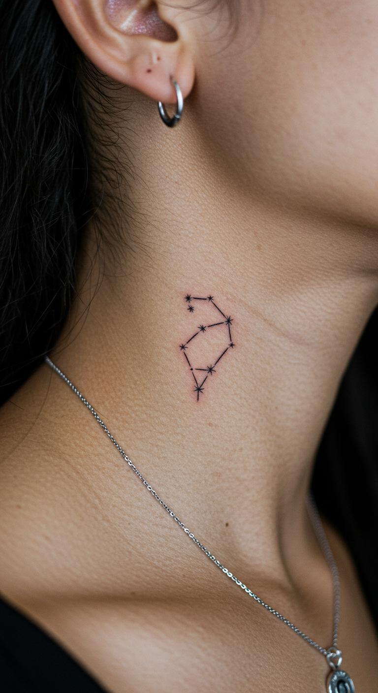 Your zodiac on the neck adds personality. Slim lines define it. Draw your sign first. Customize on paper. No-cost hack: Use phone apps to design. Signs represent traits. Choose an expert nearby. See their work. Make it small for neck. Conceal with collars. Neck tattoos fade less with care. Pair with stars. Consider your horoscope. Many select this for identity. Routine care helps.