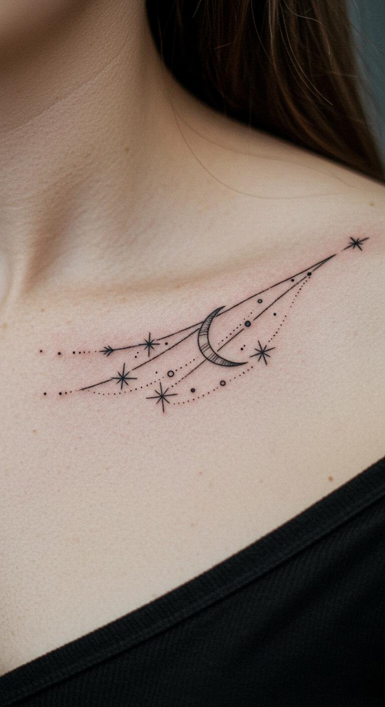 Celestial fine line tattoos capture stars or moons with elegant, thin strokes that feel magical yet simple. These designs add a cosmic vibe without much ink. Put them on your hand or neck for an everyday accessory. For low-cost prep, trace star shapes on paper with a thin marker to experiment at home. This lets you tweak ideas easily. Select areas that suit your routine, like an ankle for coverage. These tattoos highlight personal symbols, such as your birth sign. Look for artists at budget-friendly studios by asking friends for suggestions. Simple care, like keeping the area clean, helps them last. Turn this into a DIY moment by journaling your design thoughts first. The result is art that feels meaningful and effortless.