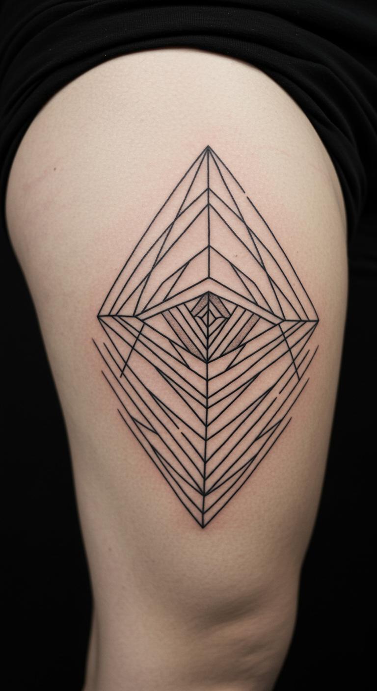 Abstract geometric fine line tattoos use clean shapes like triangles for a modern feel. These patterns create balance with just a few strokes. Try them on your leg or shoulder for a bold yet quiet statement. For an inexpensive start, draw shapes on paper with a ruler and pen to test layouts. This helps you get creative without pressure. Choose locations based on your comfort, such as the upper arm for easy concealment. Add your spin by combining shapes into a unique form. Find deals at local tattoo expos for lower prices. Keep things simple by applying a protective cover after getting it. Practice by sketching on your skin with washable ink first. The outcome is art that’s both fun and functional.