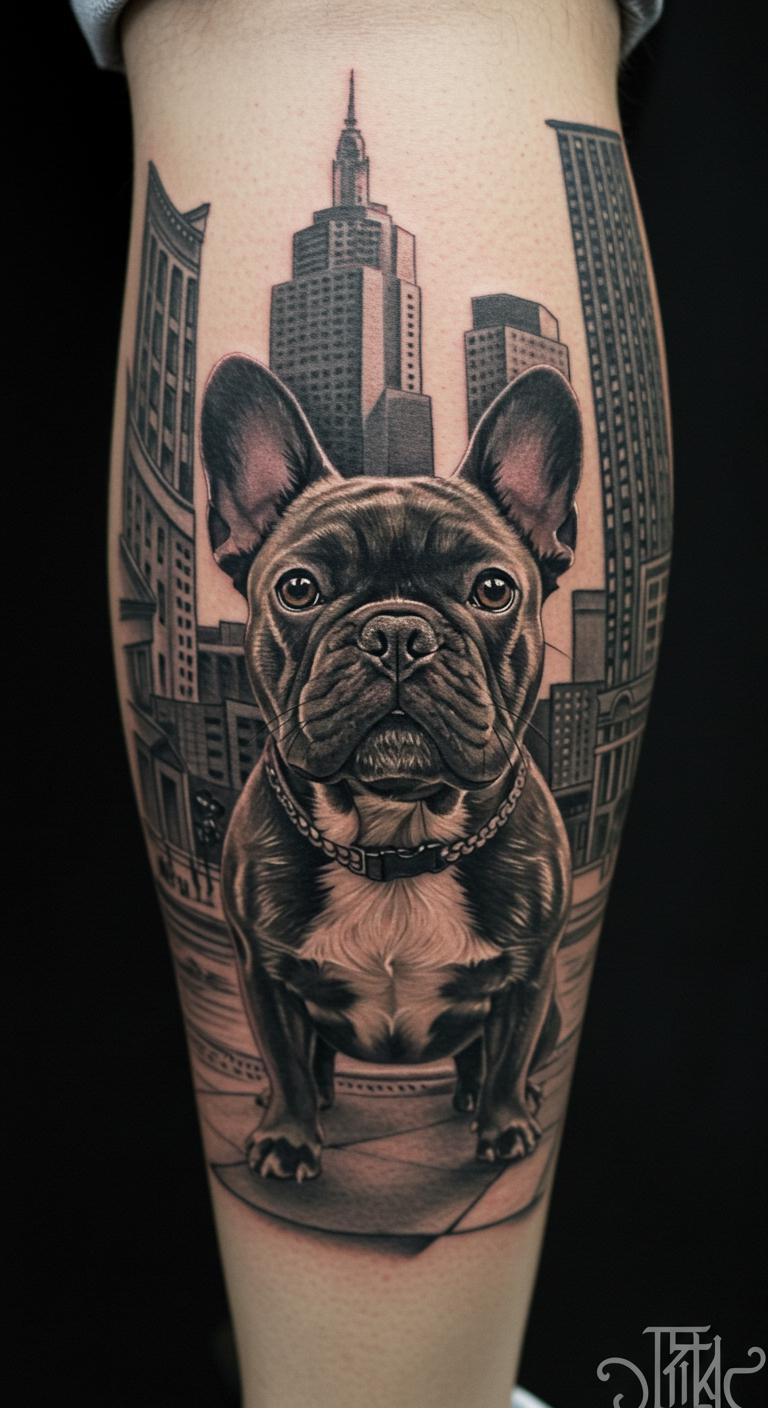 Set your French Bulldog in a city scene for modern flair. Add buildings or streets around it. Draw urban sketches on plain paper first. Keep tools basic. Put it on your leg for a story feel. City elements make it current. Use mixed inks for variety. Search affordable options in town. Include personal city touches. Manage costs with phased sessions. Test with urban-themed drawings. This reflects city life. Aim for medium scale. Make DIY versions easily.
