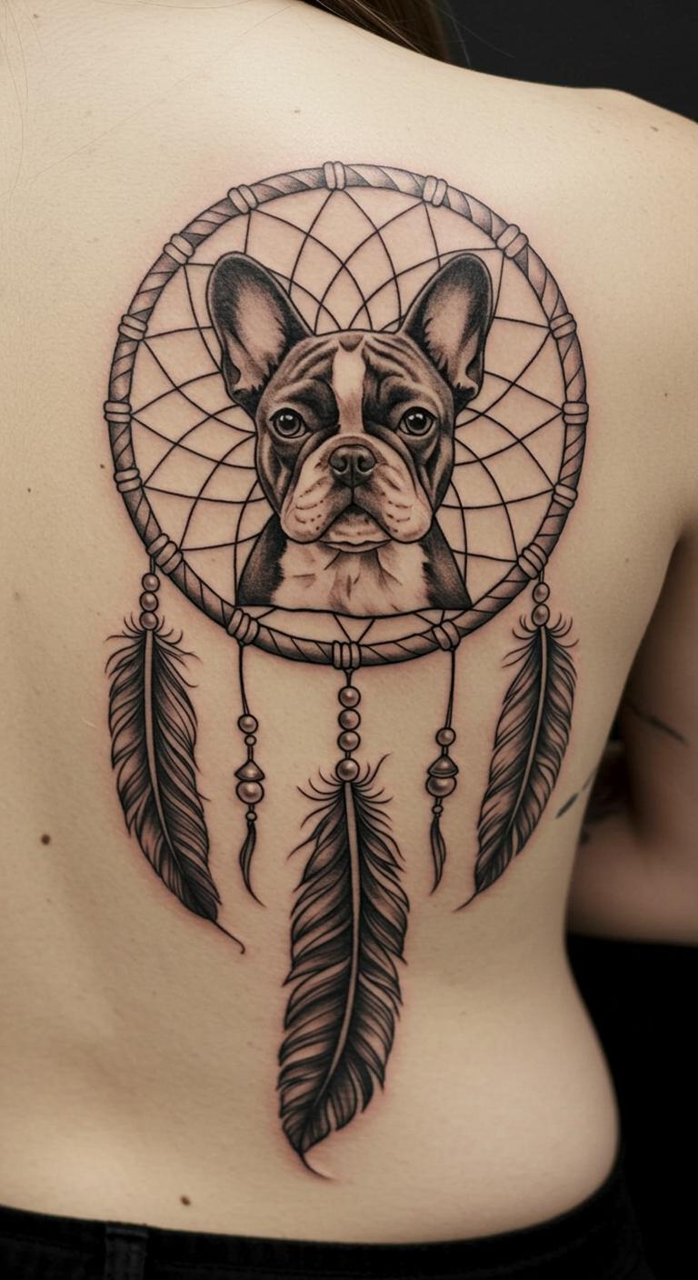 Incorporate a dreamcatcher for protection vibes. Weave the French Bulldog into the web. Sketch dreamcatchers on paper with ease. Use string for practice at home. Choose your back for a full design. Dreamcatcher weaves symbolize safety. Go for earthy tones. Look for deals at local fairs. Personalize with feathers. Affordable sessions make it possible. Test with craft supplies. This adds positive energy. Keep it proportional. Make your own templates.