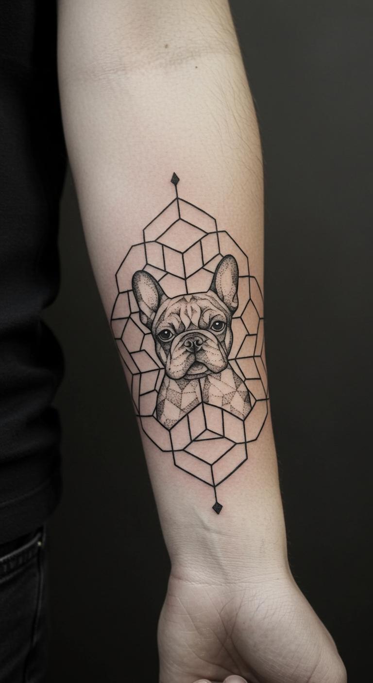 Give it a retro twist with vintage patterns. Think old-school lines for the French Bulldog. Start with aged-look drawings at home. Use old magazines for ideas. Place on your arm for timeless appeal. Retro patterns add character. Stick to muted colors. Find budget vintage-inspired artists. Add era details like borders. Keep sessions light on the wallet. Practice with thrift store finds. This brings history to life. Opt for standard sizes. Create with simple pens.