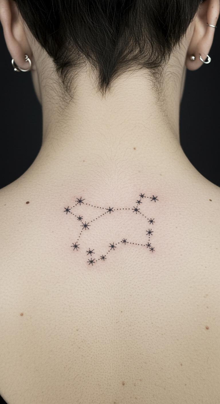 Draw from the stars with a dotted constellation design. It connects you to the sky in a quiet way. Try behind your ear for easy hiding. Keep expenses down by sticking to basics. A DIY example: Use stencils from craft stores to plan ahead. Get temporary stickers for quick trials at low cost. Personalize with a small extra dot. Local shops might offer this for $40–80. Sketch it out on paper first. Make it about your story.