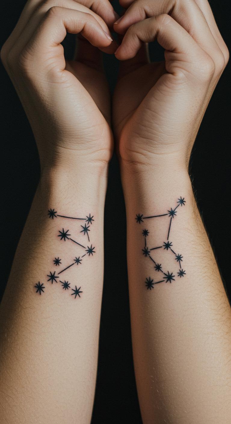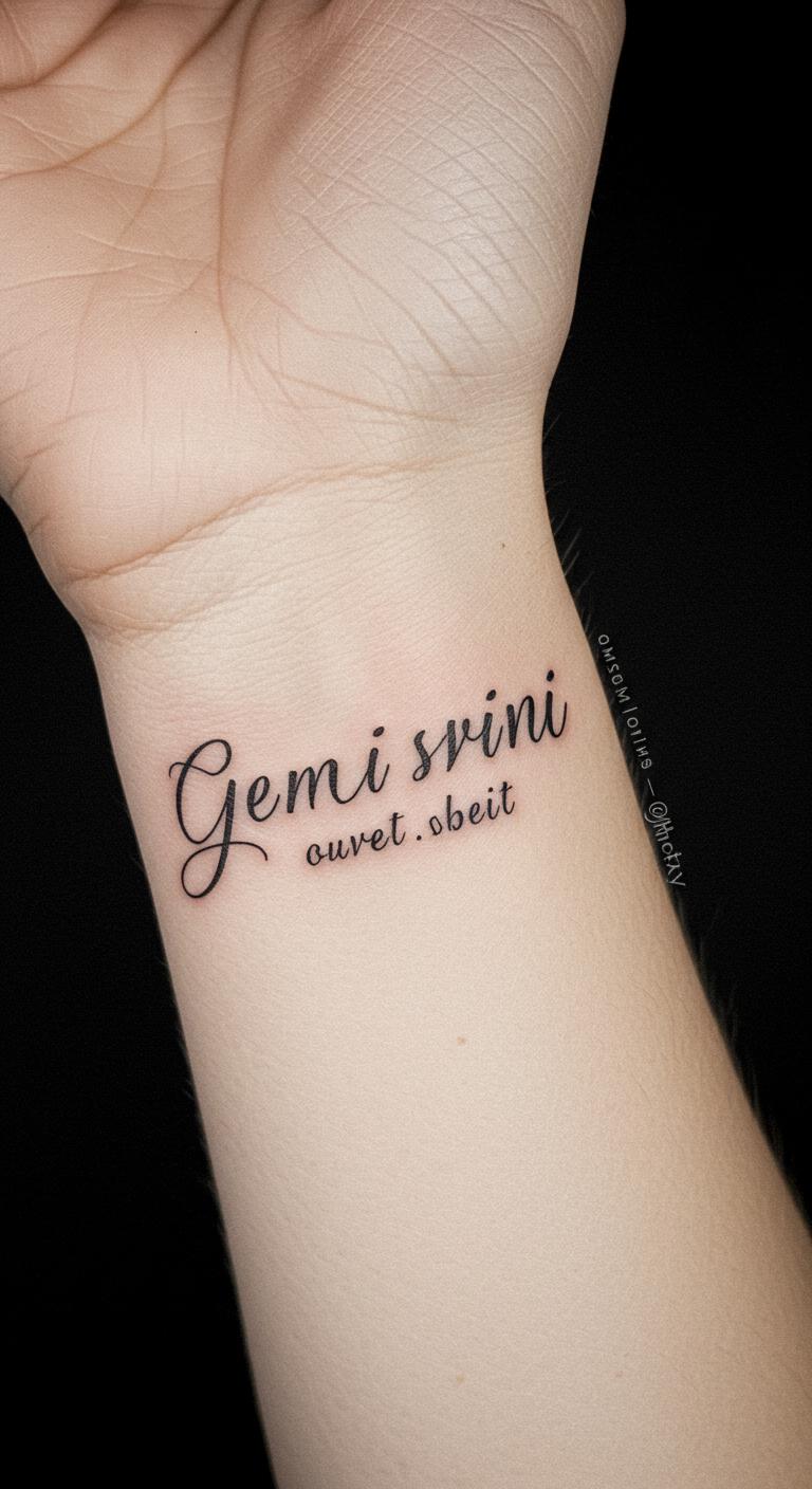 Write “twins” or a short phrase in neat script. This adds a direct nod to your sign. Place it on your ankle for daily reminders. Choose simple fonts to save on ink. Budget hack: Practice handwriting at home with no supplies needed. Buy wash-off tattoos for under $3. Tweak it with a small symbol. Expect $50 for pro work. Draw samples yourself. Focus on what speaks to you.
