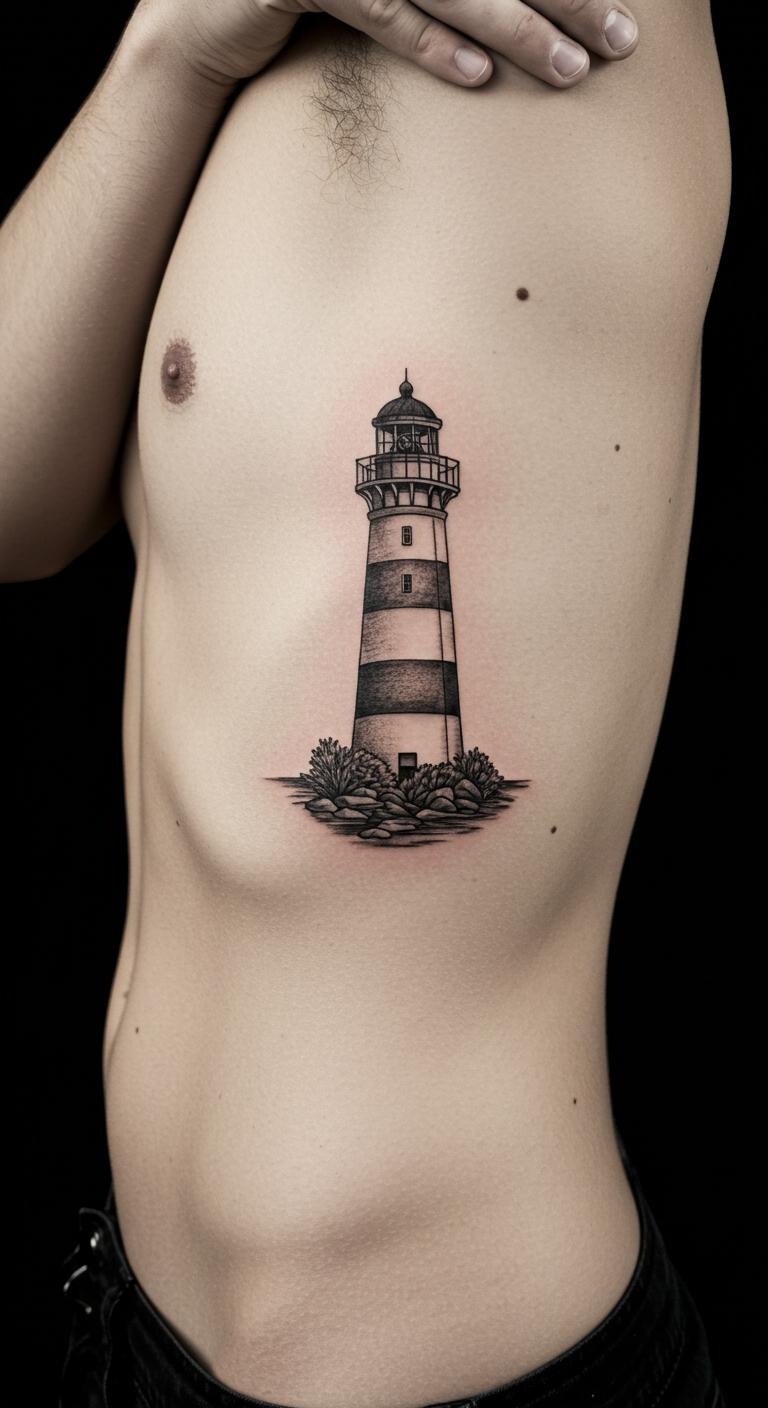 Hide a lighthouse on your ribcage. This keeps it private. Draw a basic outline. Artists charge about $130 for this spot. Include vines for a twist. Make a template with paper. Ribcage tattoos stay covered most times. They reveal on choice. Pick hidden styles for privacy. Learn from shared experiences online. Bring your drawing to refine. This gem adds secret meaning.