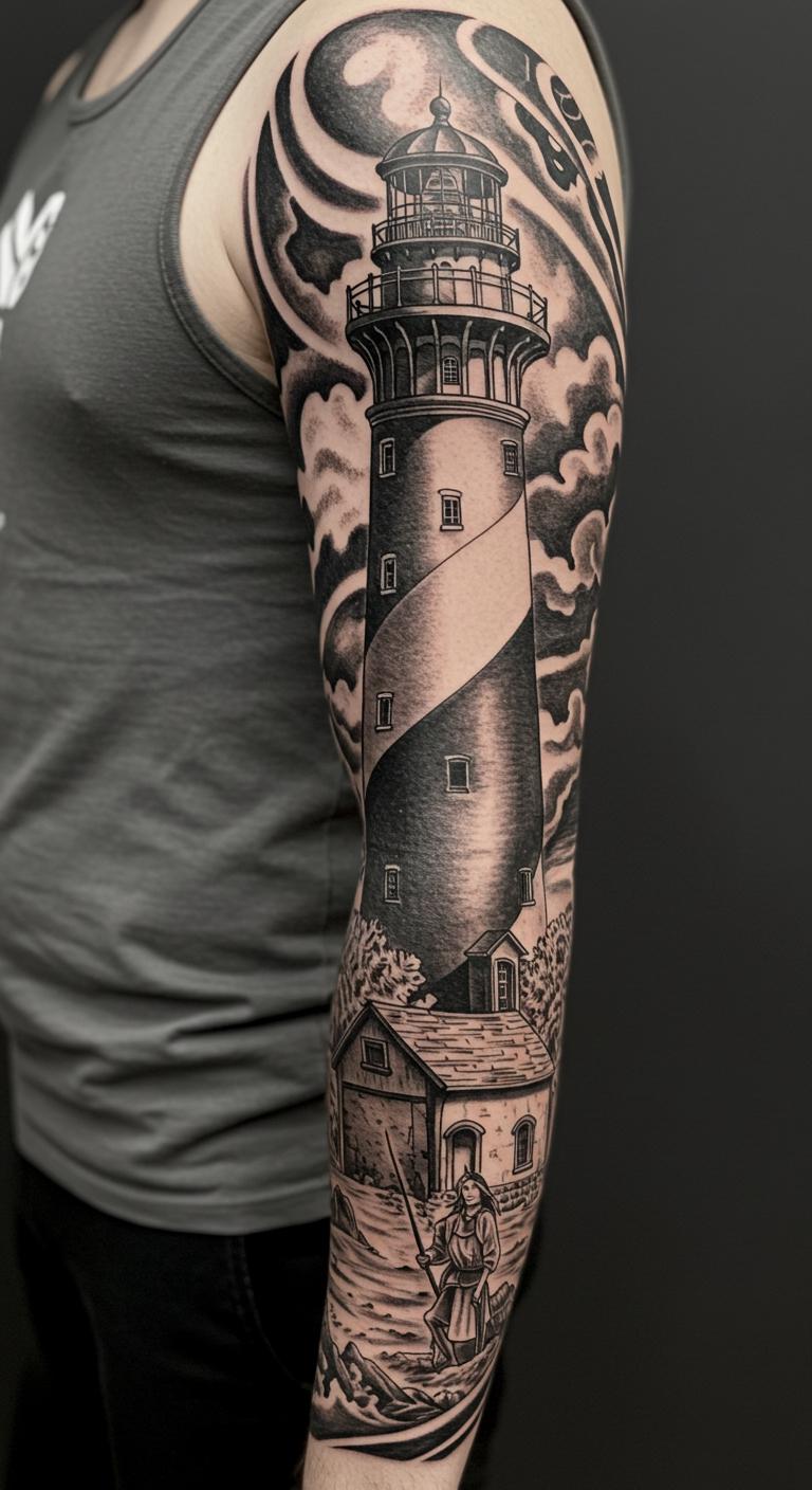 Build an epic sleeve with a lighthouse. This tells a full story. Start with sketches of scenes. Sleeve work might be $200. Include waves and stars. Create a plan on paper. Sleeve tattoos cover the arm fully. They evolve over time. Break it into phases for cost. Watch step-by-step guides. Work with an artist on details. This tale becomes your narrative.