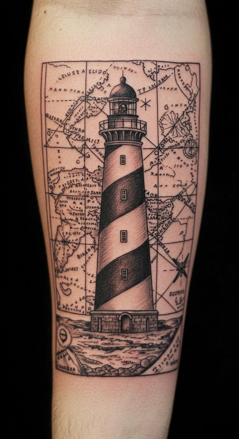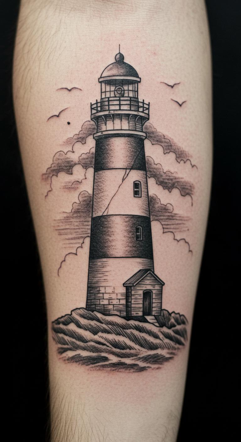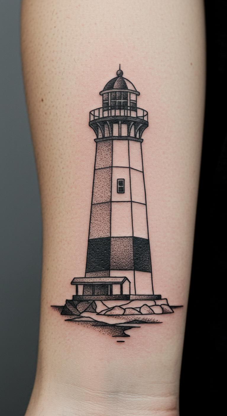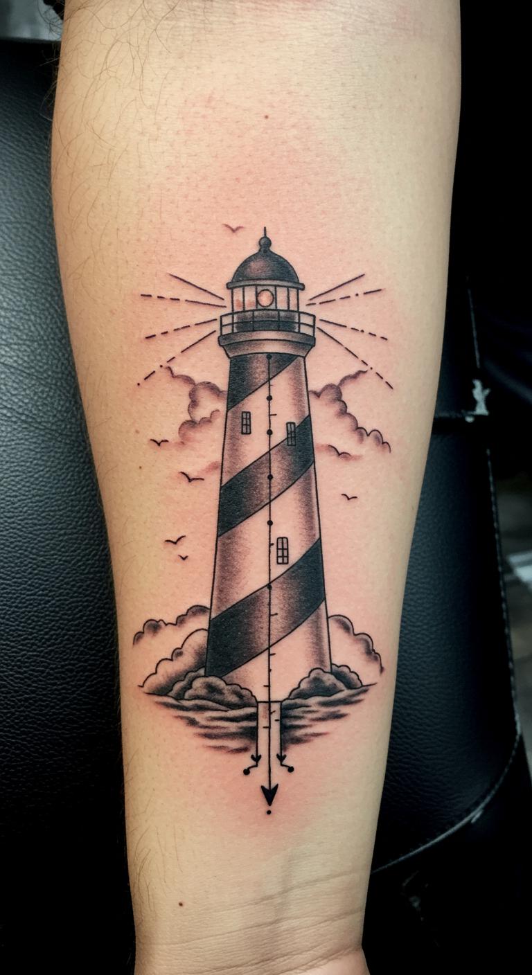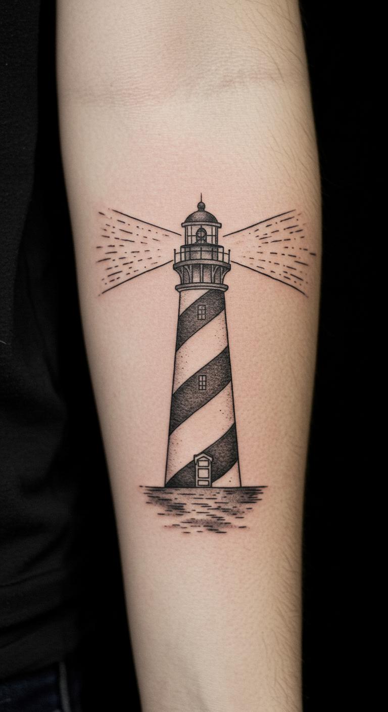 Consider a forearm lighthouse with a light beam. This makes it look like it’s shining. It symbolizes direction in daily life. Sketch the beam as a straight line yourself. Find budget artists online for about $80. Add details like stars for a night theme. Use household items to practice drawing, like a ruler. Place it where you can see it often for motivation. Forearms heal quickly and show off well. Go for one-color ink to simplify the process. Follow free guides on tattoo prep. Share your sketch at the studio for adjustments. This idea works for meaningful reminders. It stays elegant over time. Choose a design that fits your arm shape. You end up with subtle yet strong art.