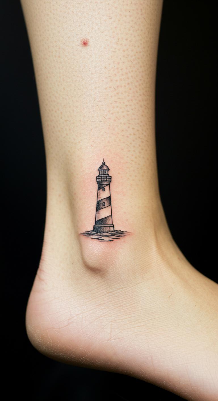 A small lighthouse on your ankle keeps it discreet. This works for first tattoos. It stands for personal guidance. Sketch a mini version on your foot. Search for affordable shops near you, often $60. Add a dot for the light. Use a pen to trace ideas at home. Ankle spots are quick to ink. They peek out from shoes nicely. Choose fine needles for less pain. Learn basic drawing from online sources. Take your sketch to get it right. This design is easy to maintain. It fits busy schedules perfectly.