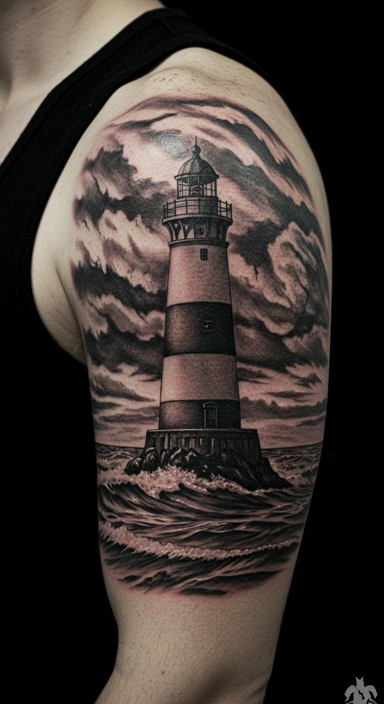 Pair a lighthouse with stormy seas on your shoulder. This shows resilience. Sketch waves around the tower. Artists often do this for $90. Mix in cloud shapes for drama. Draw at home with basic supplies. Shoulder spots balance well on the body. They hide under shirts easily. Choose combo designs for one visit. Use online resources for wave ideas. Adjust your sketch on site. This tattoo tells a tale of strength.